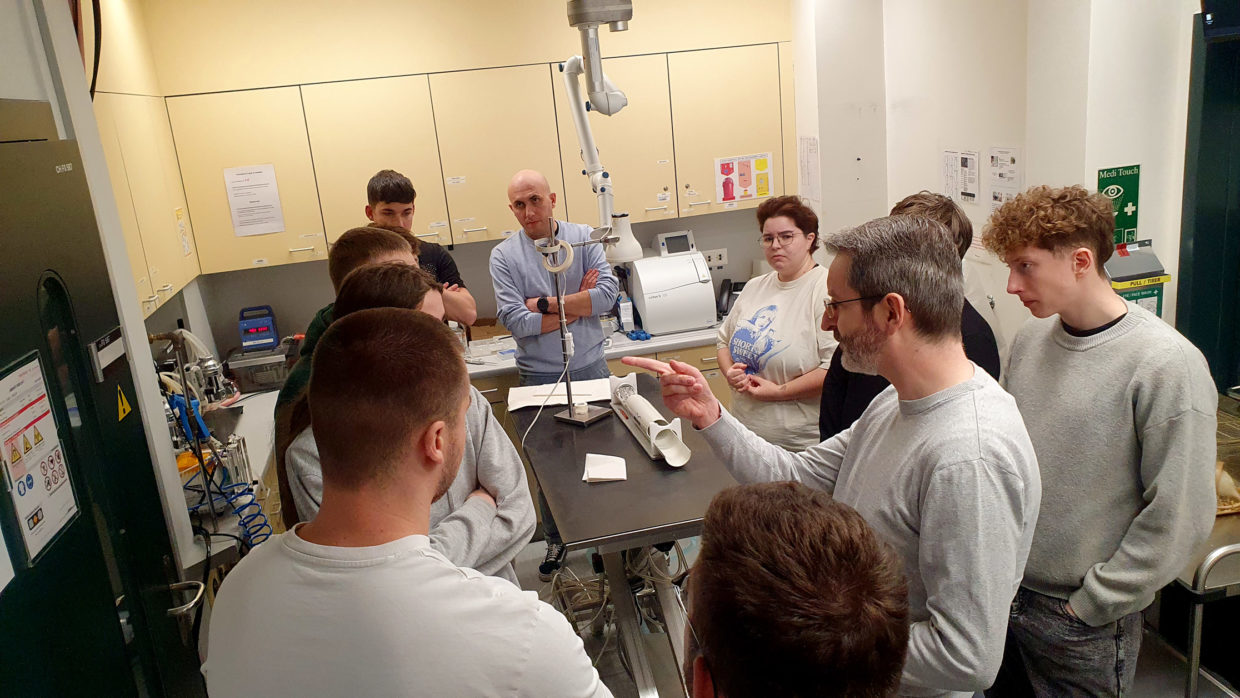 On Wednesday, January 7, 2026, sixteen final‑year Bachelor students from the School of Engineering at HES‑SO Valais‑Wallis visited CIBM’s facilities at EPFL and CHUV to learn more about advanced research and technologies at the cross-section between biomedical imaging and data science. Oscar Esteban, Associate Professor at HES‑SO and an active member of the CIBM community coordinated this part of the 5-day ‘Voyage d’études’ organized by HES-SO. Professor Esteban previously gave a Breakfast & Science seminar, proposed the fMRIPrep Bootcamp in 2024, and hosted a Visitors Talk in 2025.