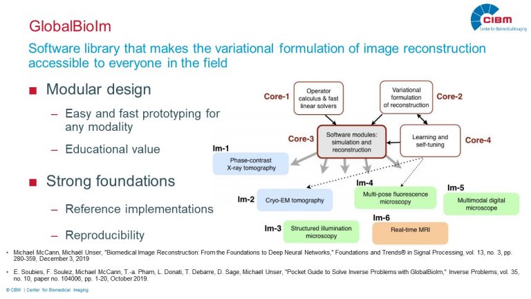 [4] Michaël Unser, Emmanuel Soubies, Ferréol Soulez, Michael McCann, and Laurène Donati, GlobalBioIm: A Unifying Computational Framework for Solving Inverse Problems, Optical Society of America (Paper CTu1B.1, 2017)